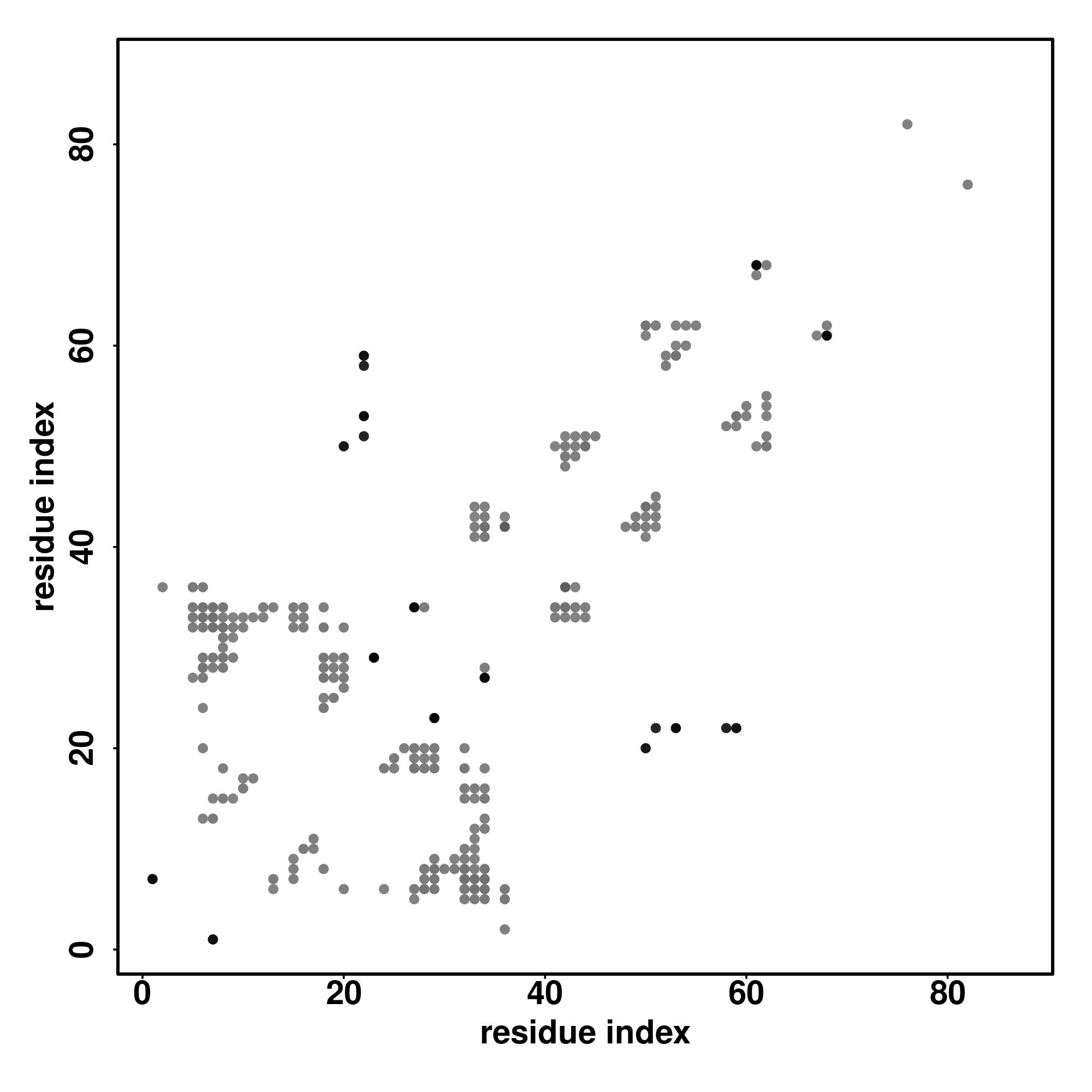 For the contact map, each dot represents a residue pair with predicted contact,