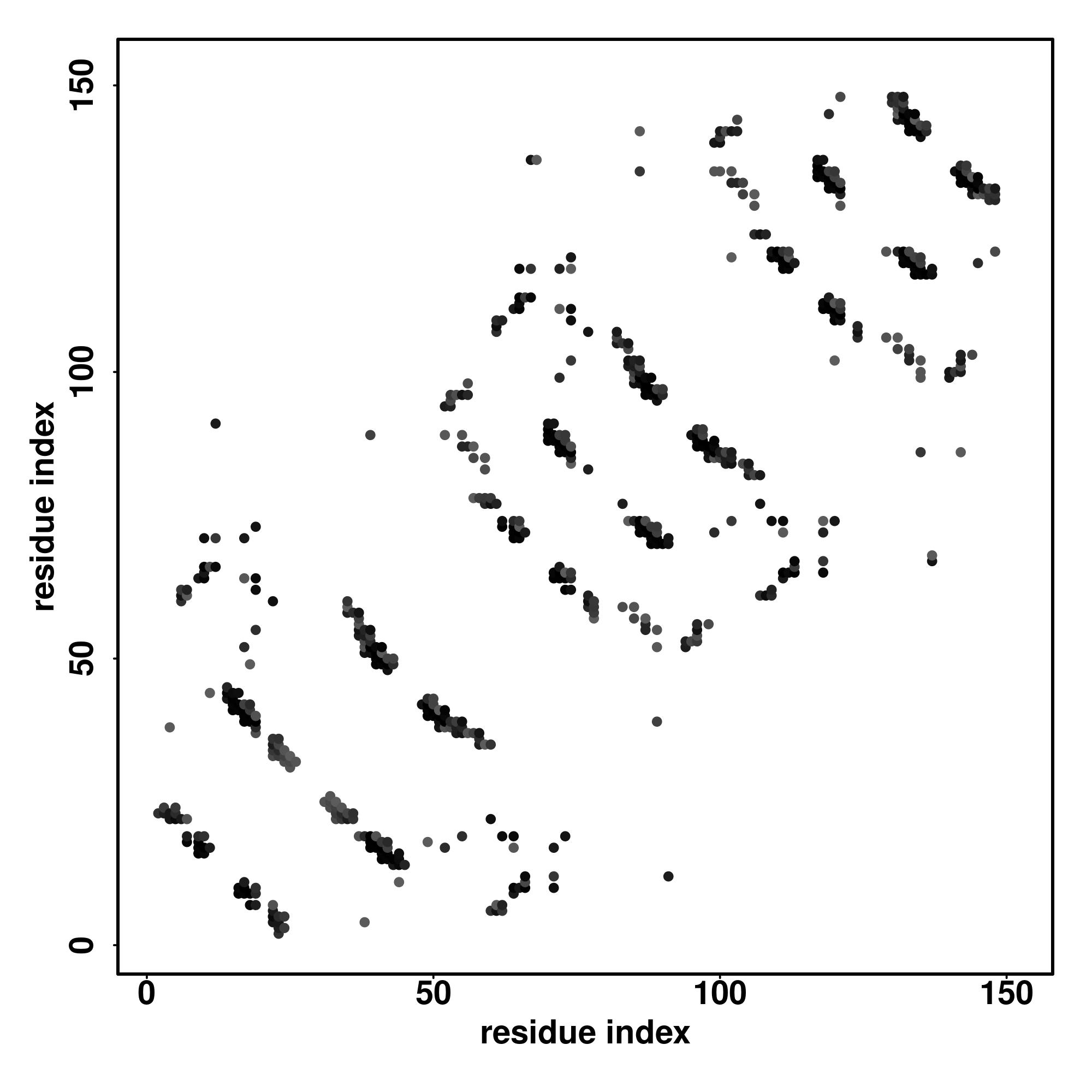 For the contact map, each dot represents a residue pair with predicted contact,