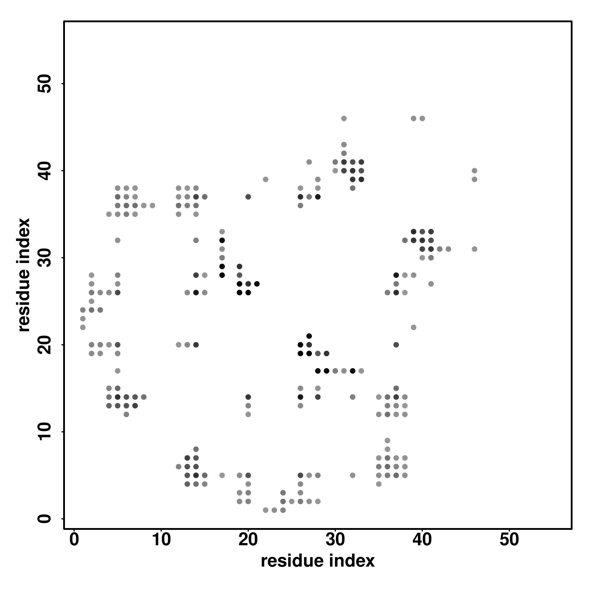For the contact map, each dot represents a residue pair with predicted contact,