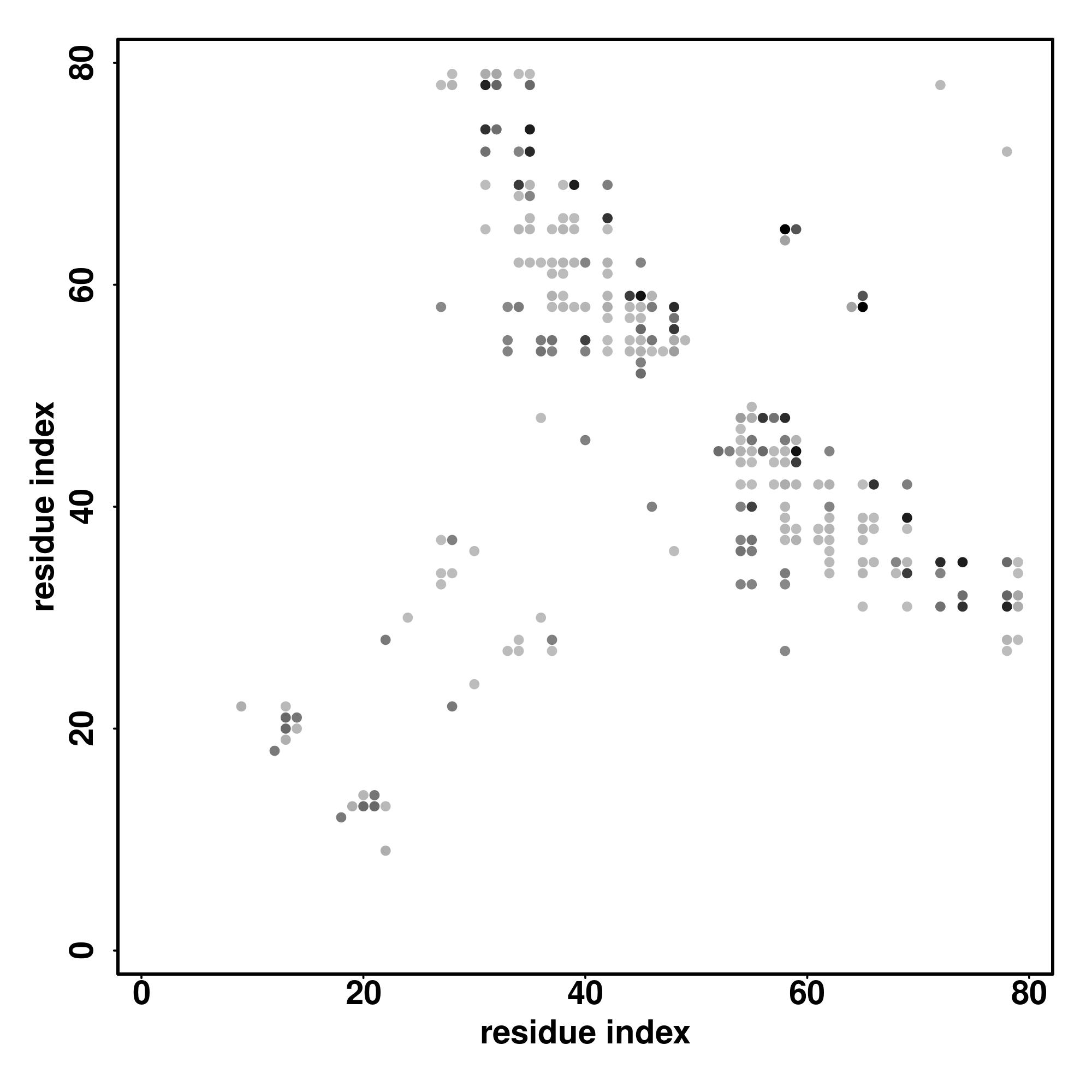 For the contact map, each dot represents a residue pair with predicted contact,
