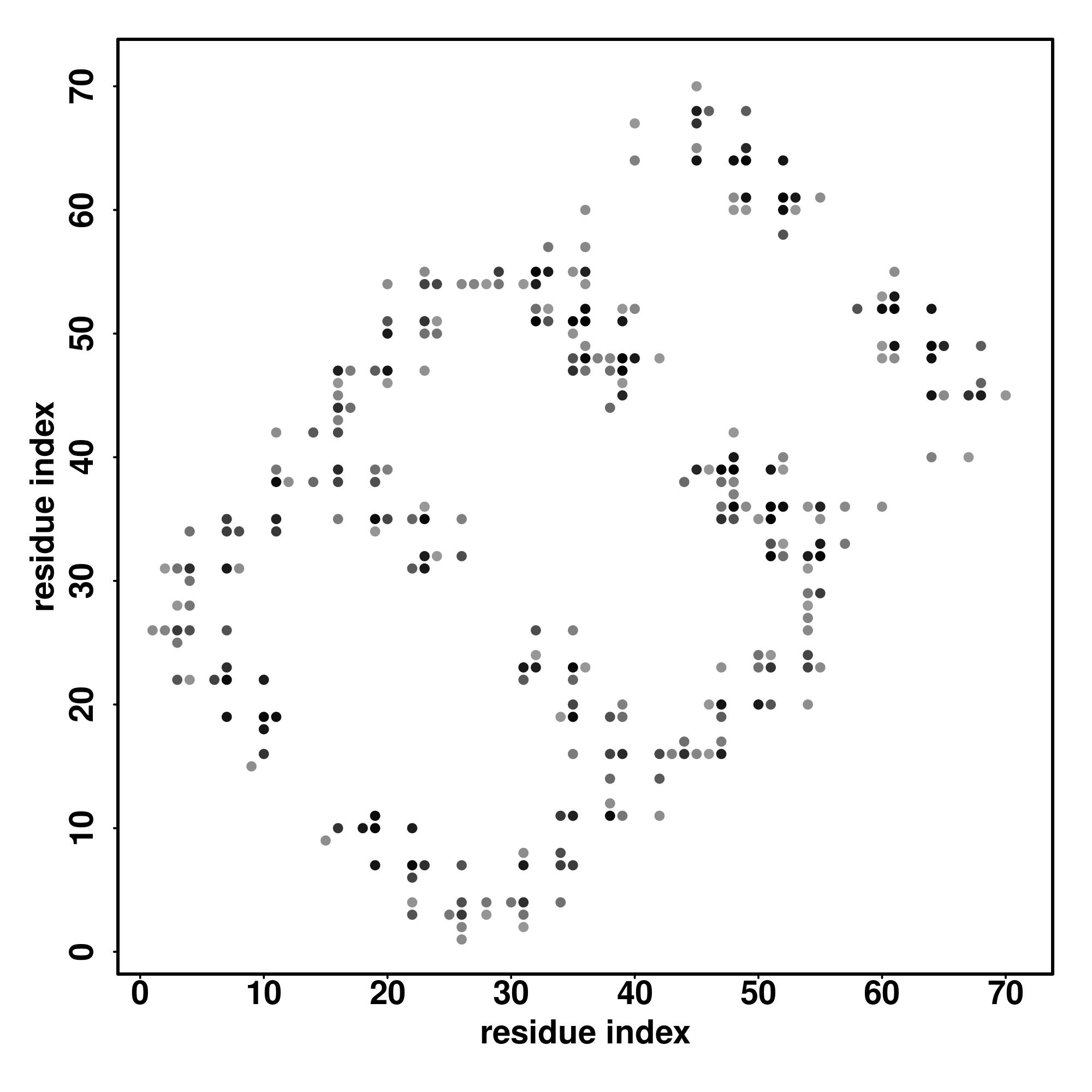 For the contact map, each dot represents a residue pair with predicted contact,