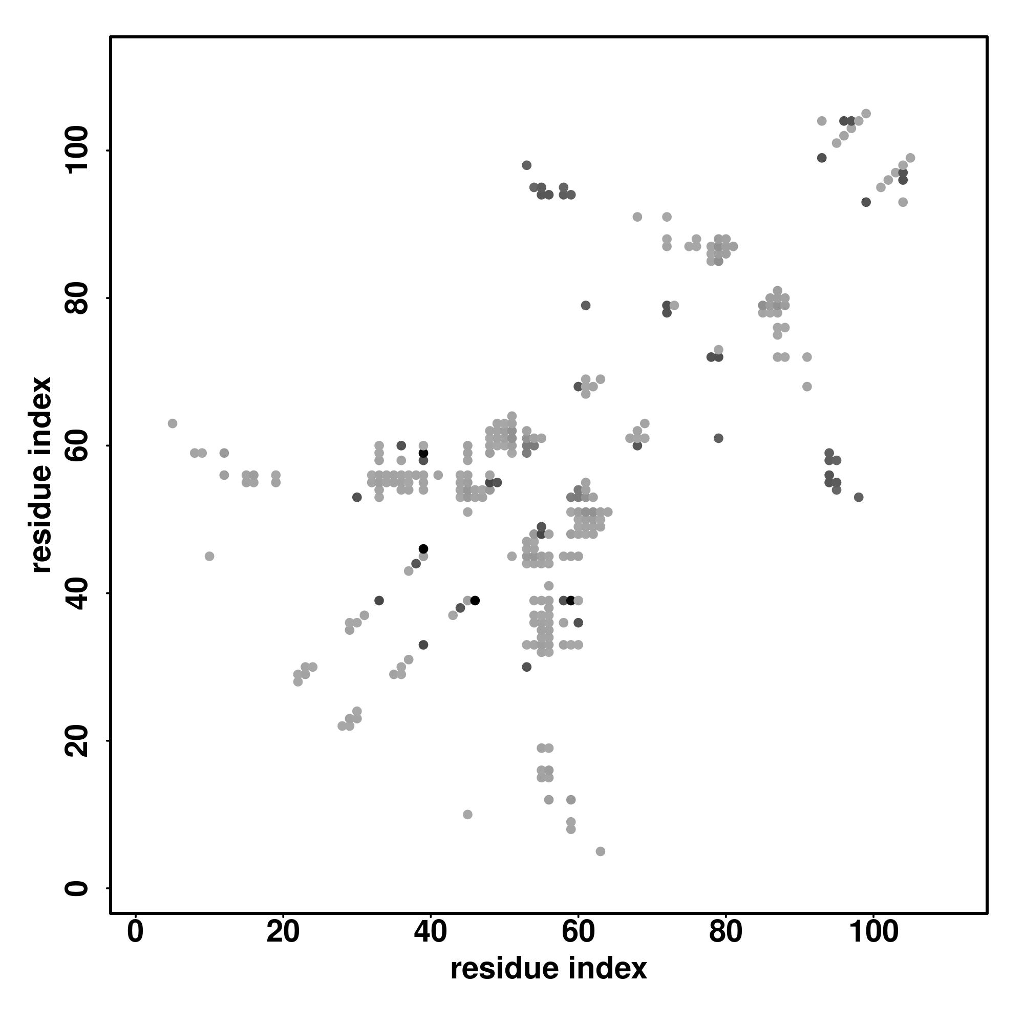 For the contact map, each dot represents a residue pair with predicted contact,