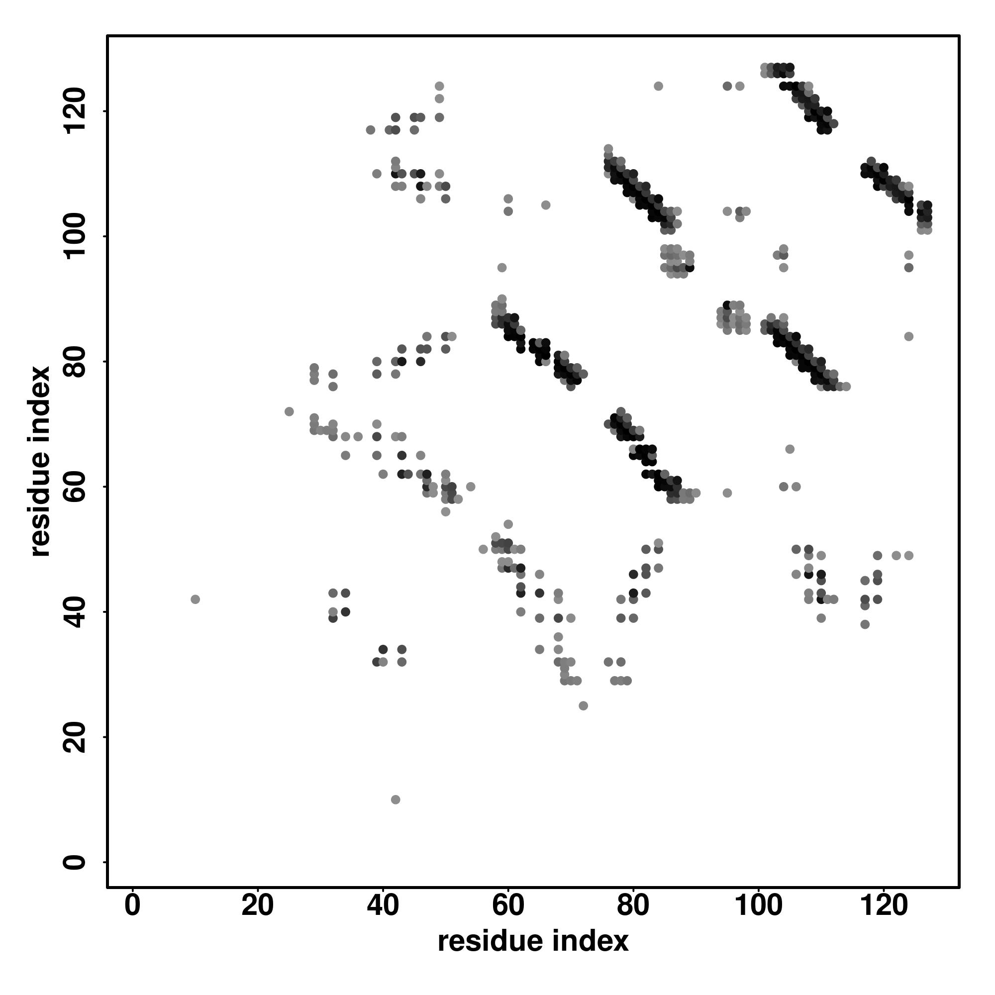 For the contact map, each dot represents a residue pair with predicted contact,