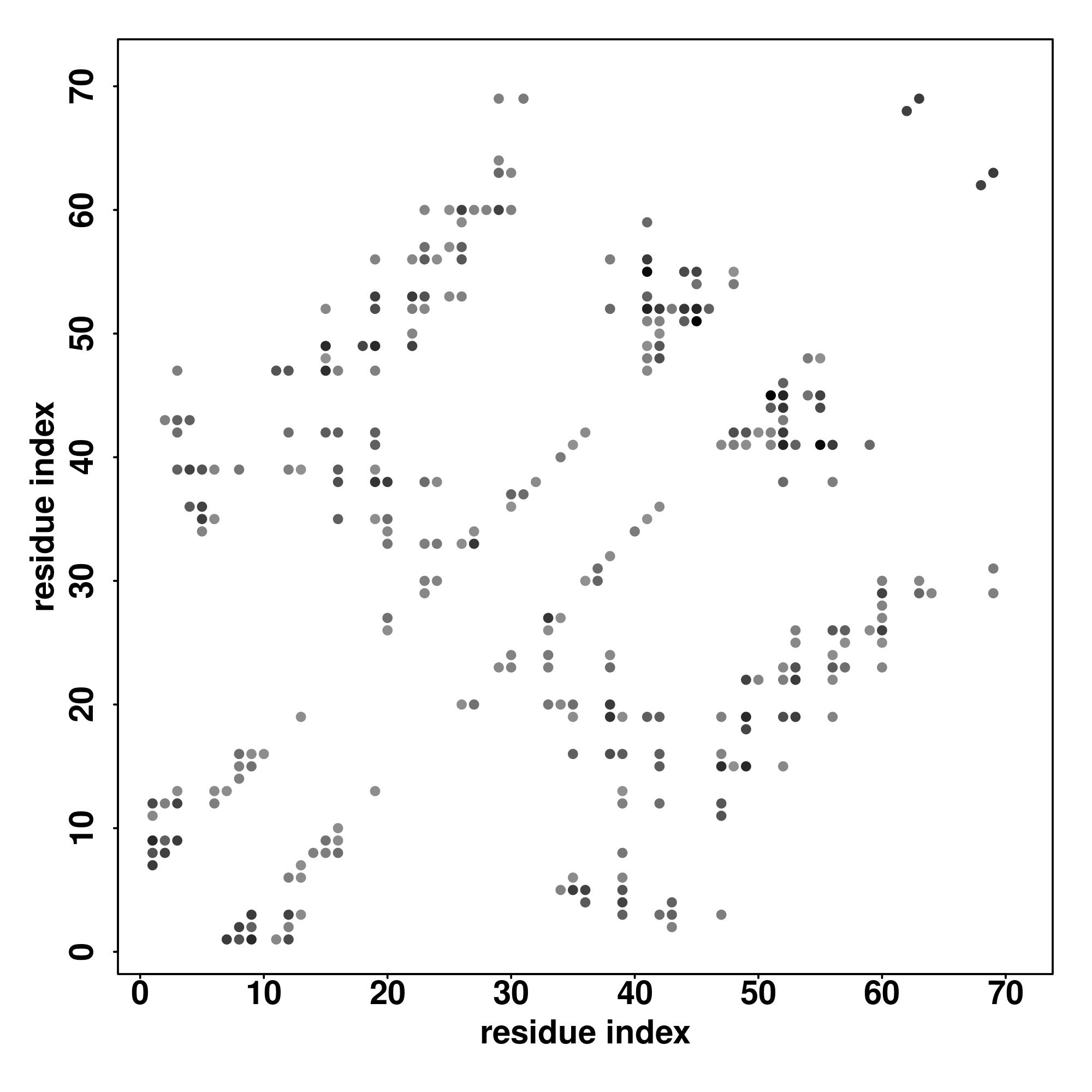 For the contact map, each dot represents a residue pair with predicted contact,