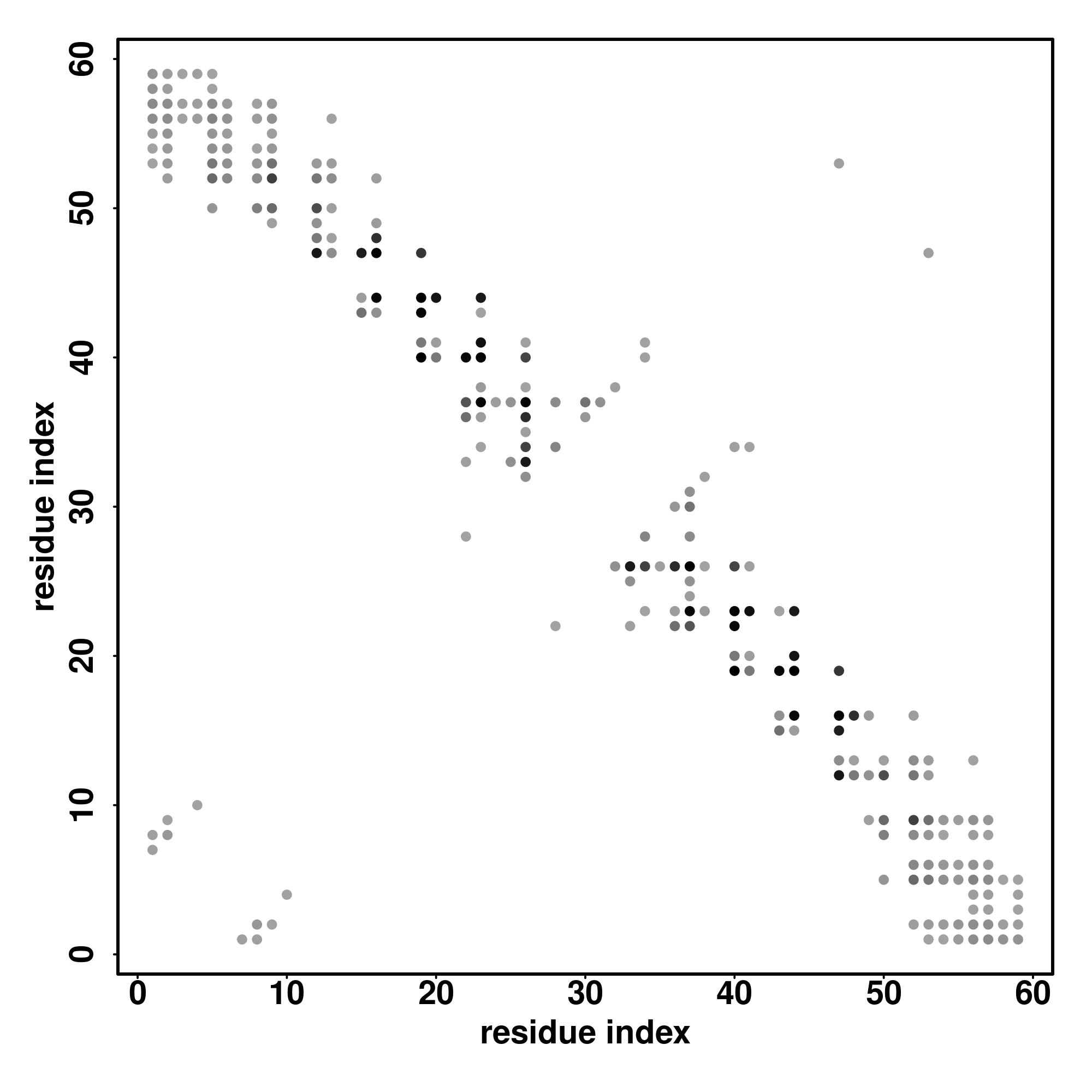 For the contact map, each dot represents a residue pair with predicted contact,