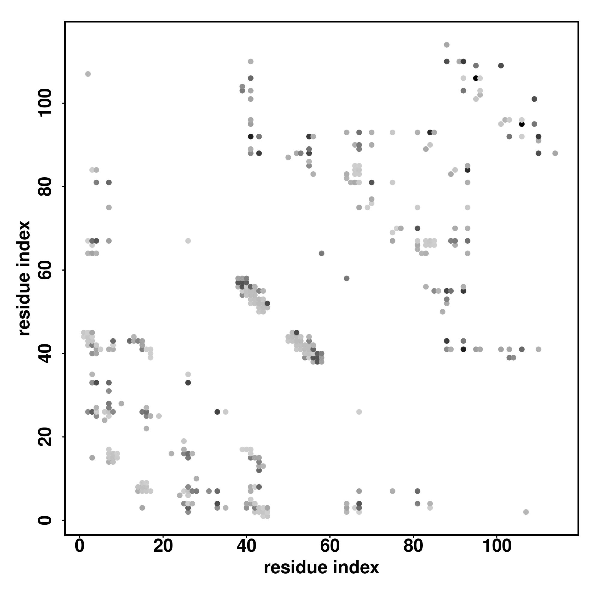 For the contact map, each dot represents a residue pair with predicted contact,