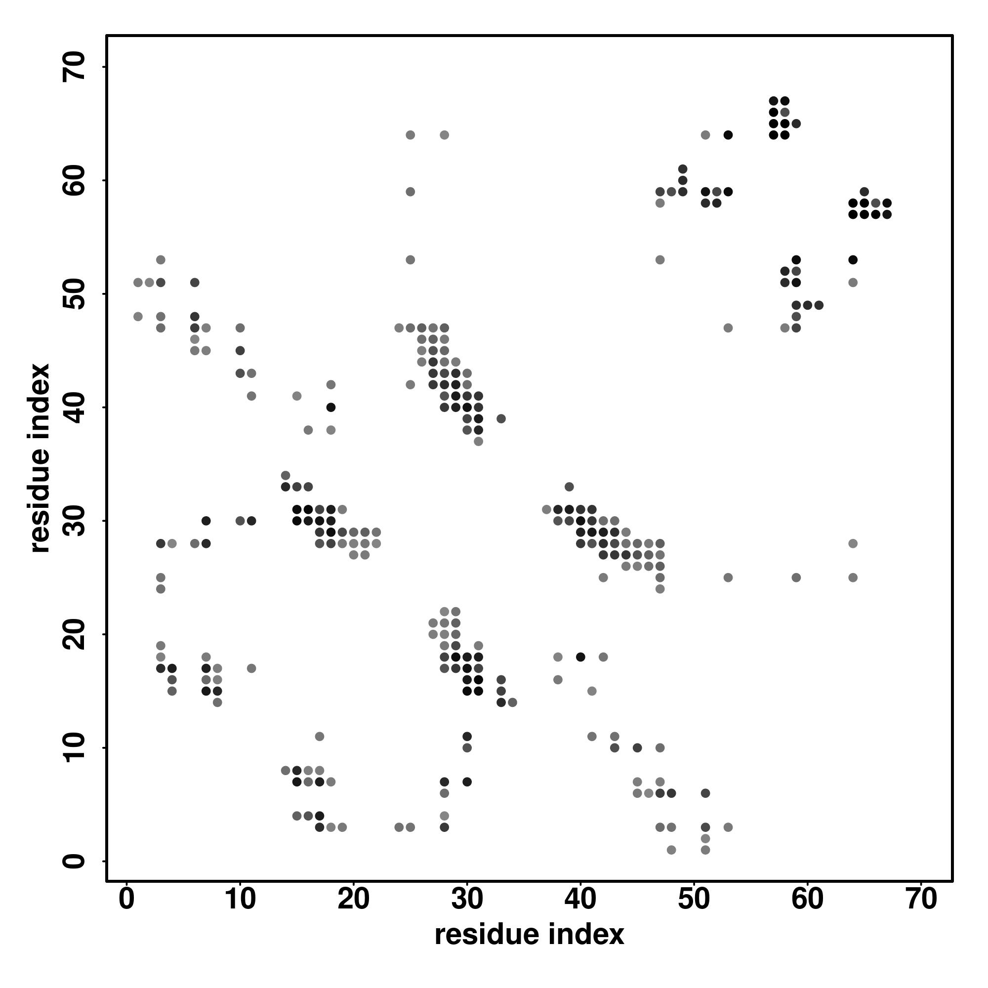 For the contact map, each dot represents a residue pair with predicted contact,