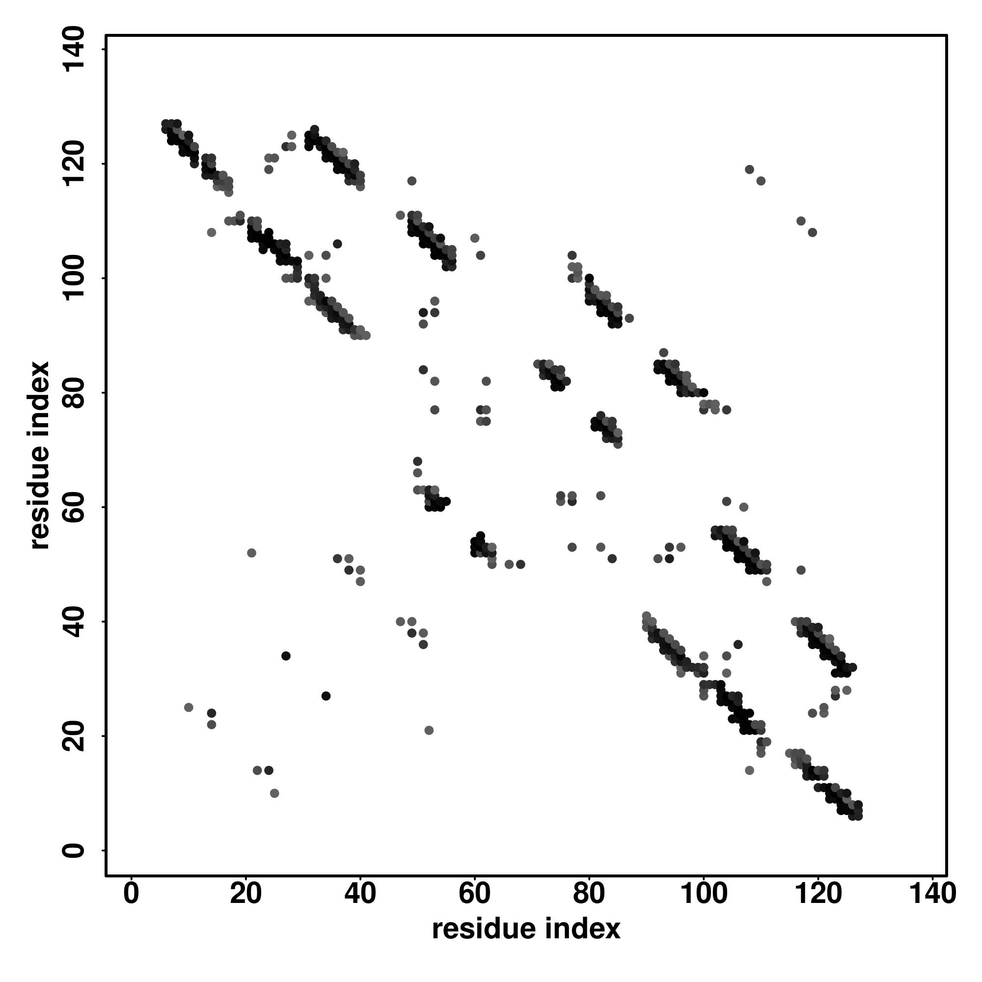 For the contact map, each dot represents a residue pair with predicted contact,