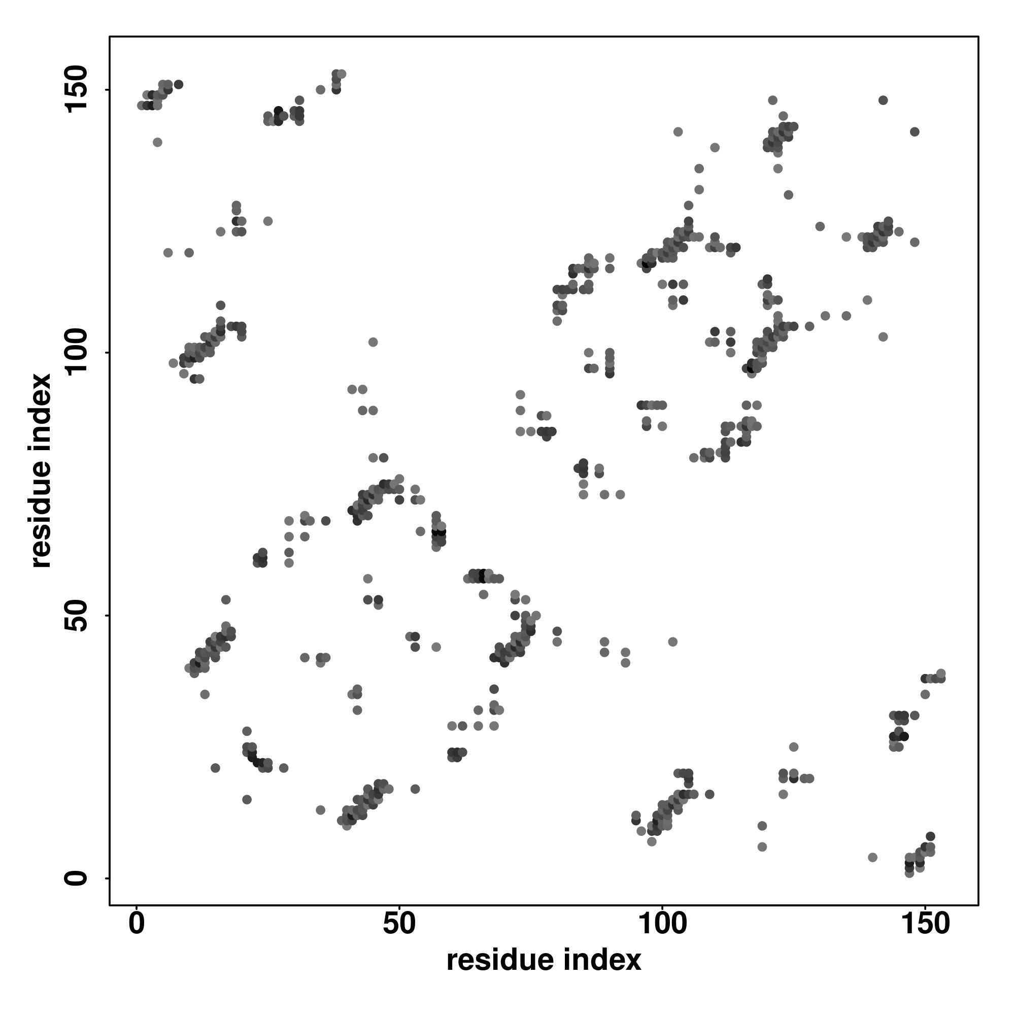 For the contact map, each dot represents a residue pair with predicted contact,