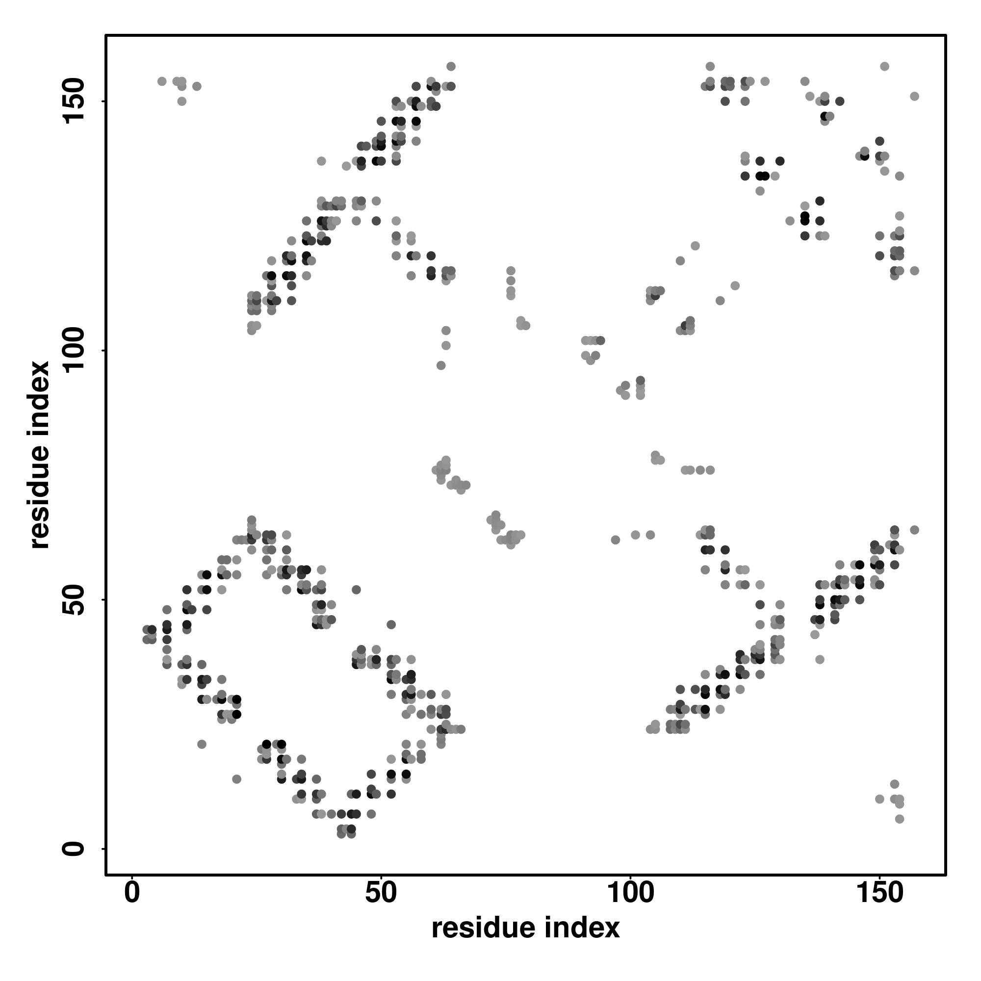 For the contact map, each dot represents a residue pair with predicted contact,