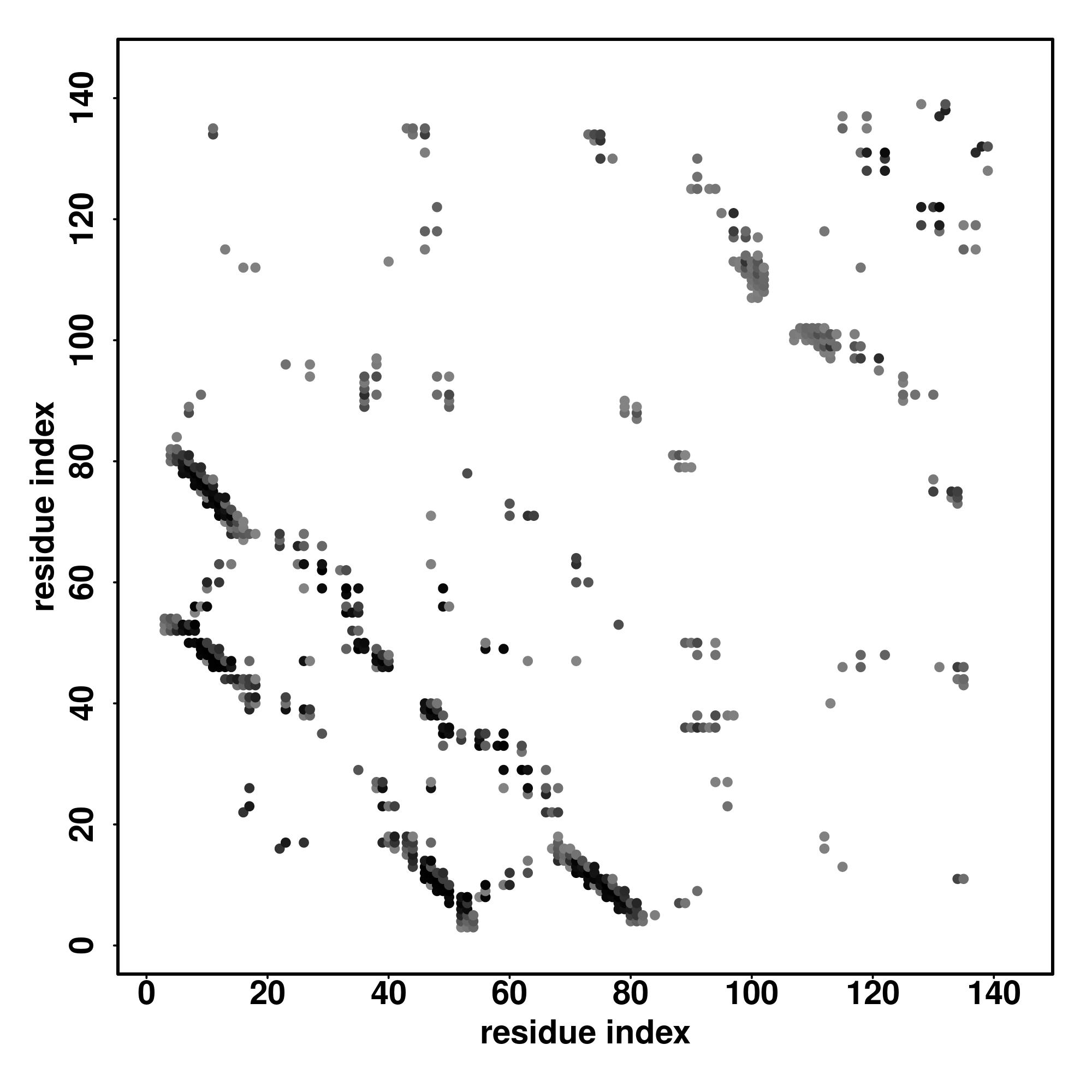 For the contact map, each dot represents a residue pair with predicted contact,
