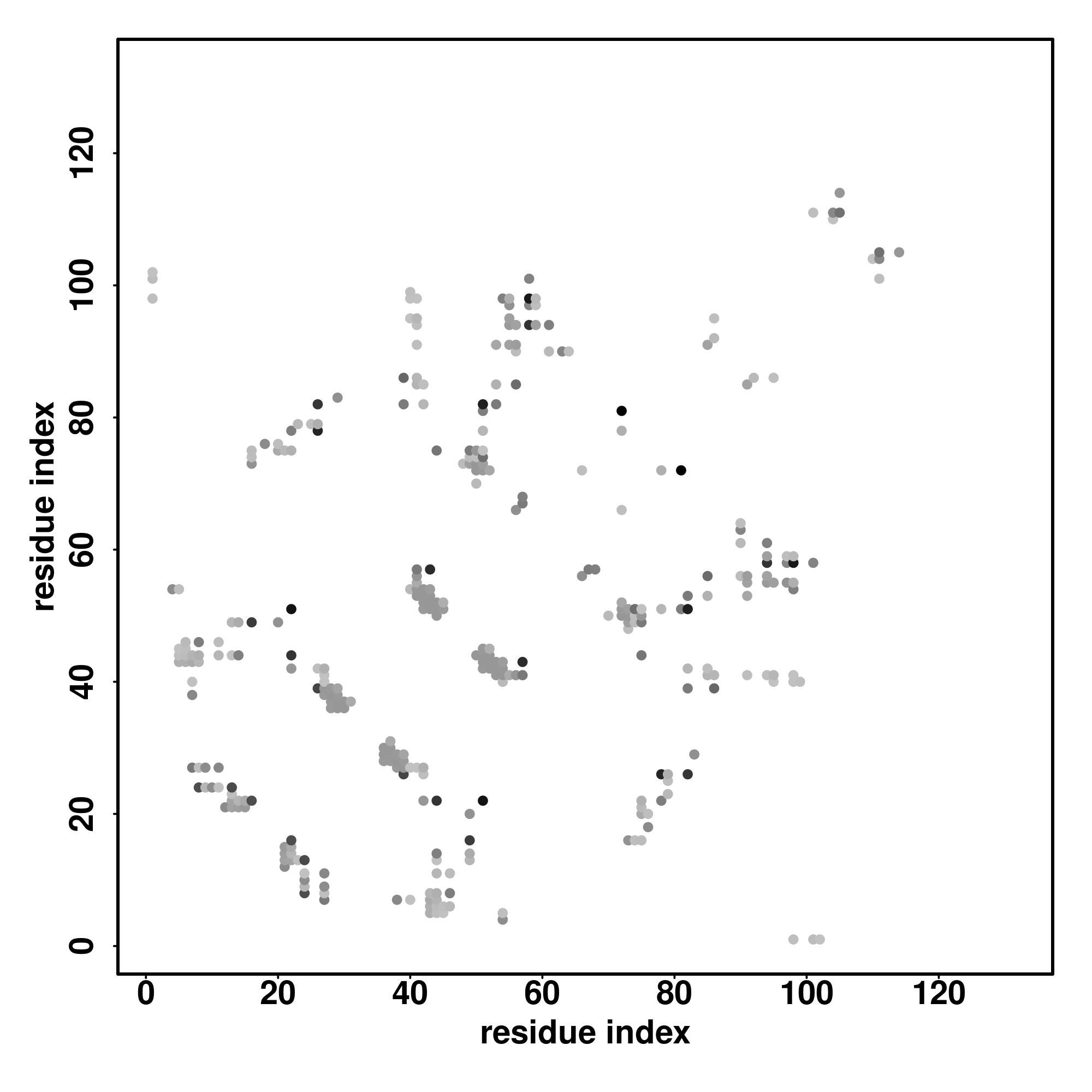 For the contact map, each dot represents a residue pair with predicted contact,