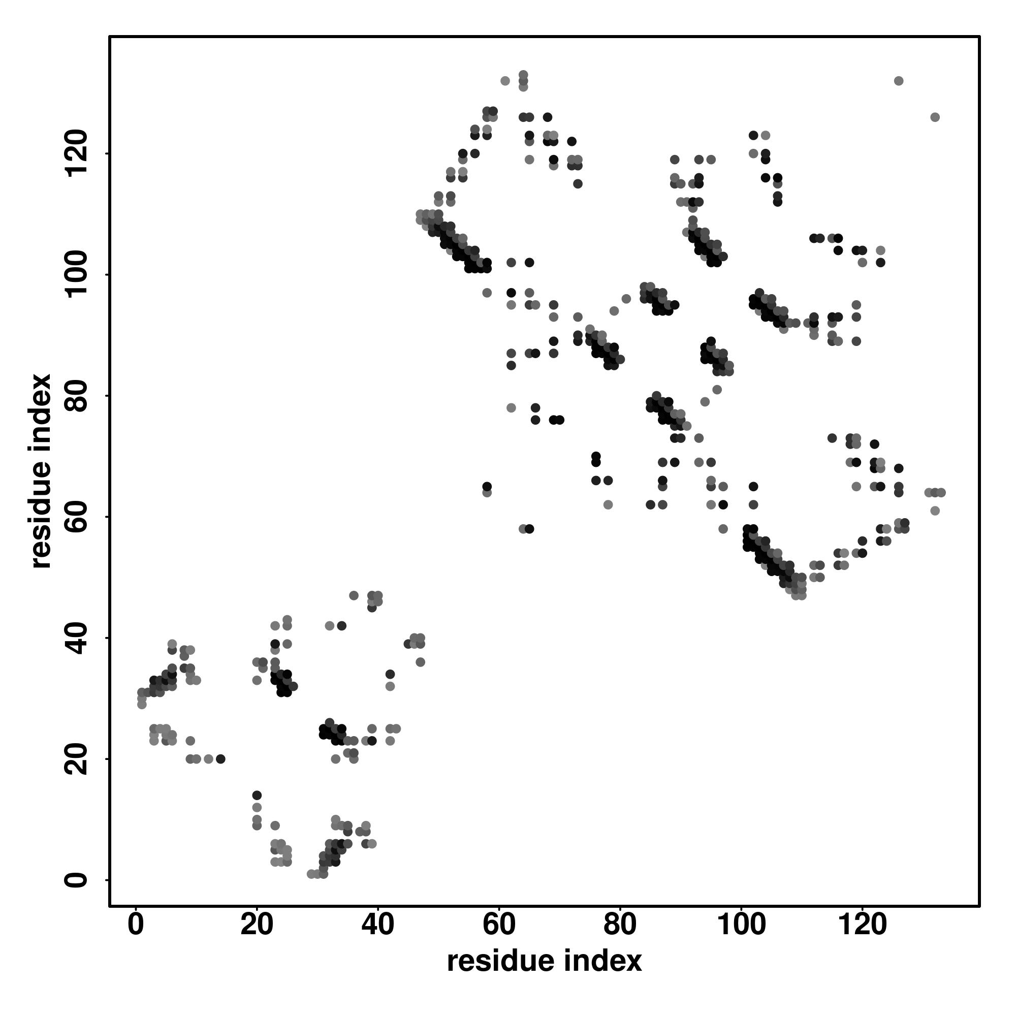 For the contact map, each dot represents a residue pair with predicted contact,