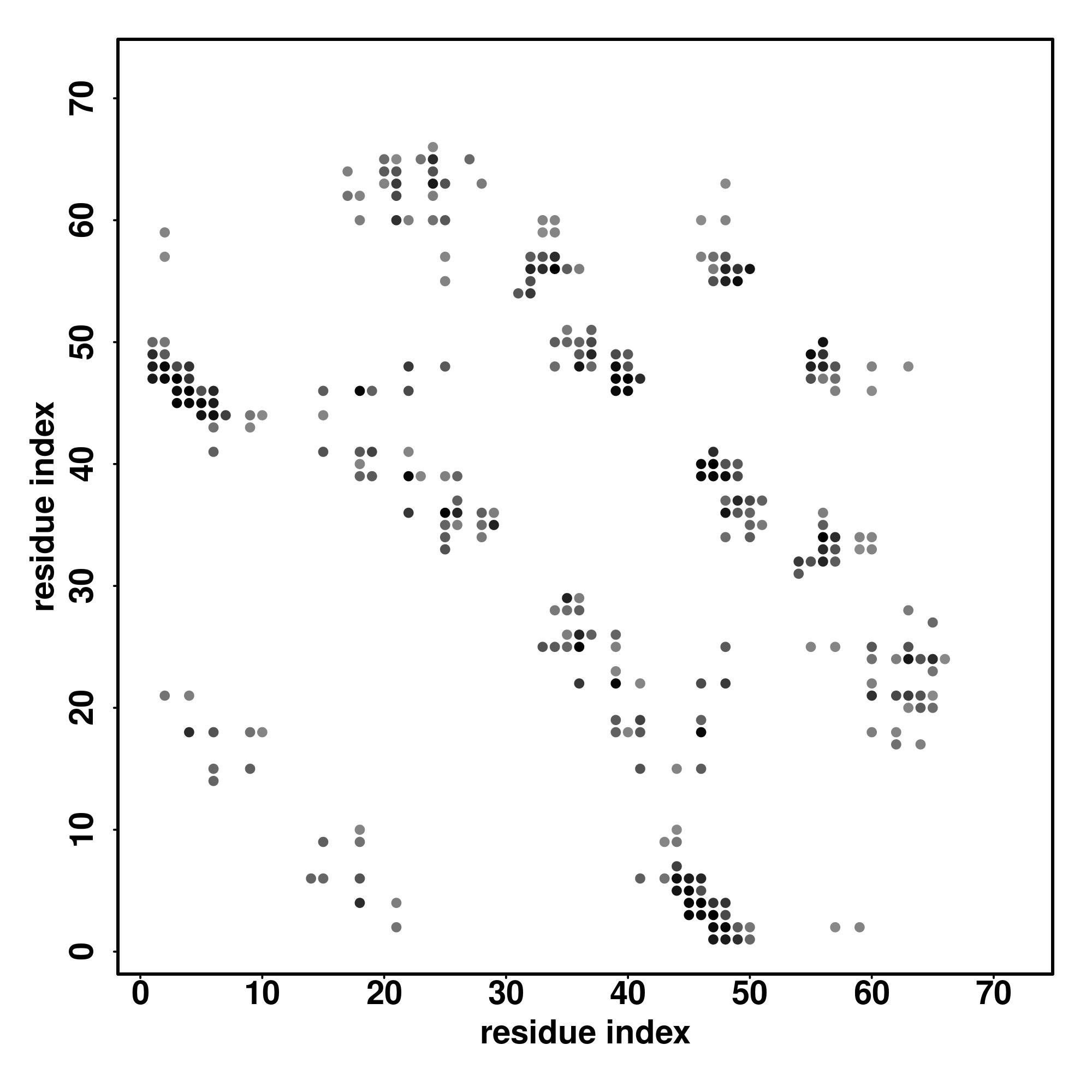 For the contact map, each dot represents a residue pair with predicted contact,