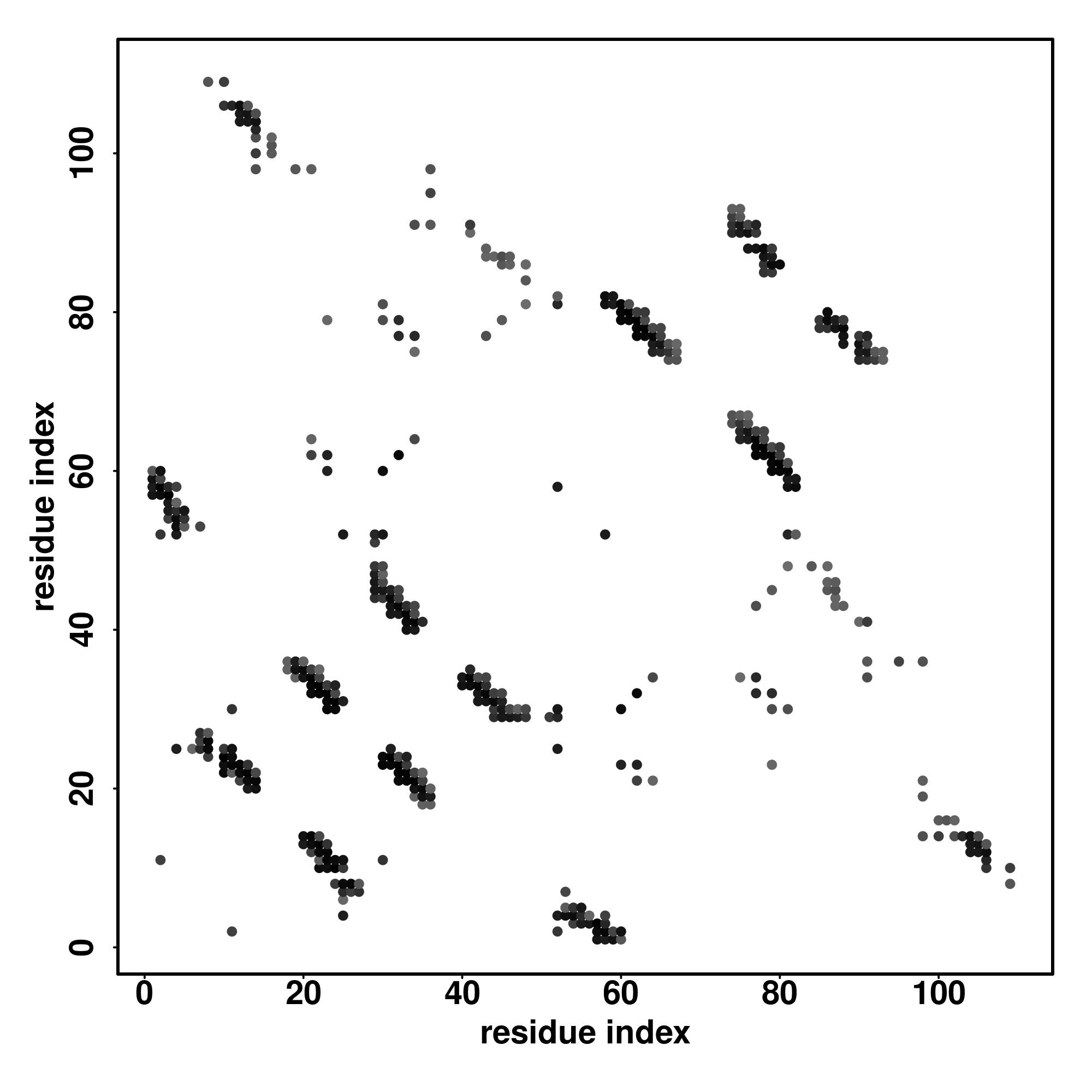 For the contact map, each dot represents a residue pair with predicted contact,