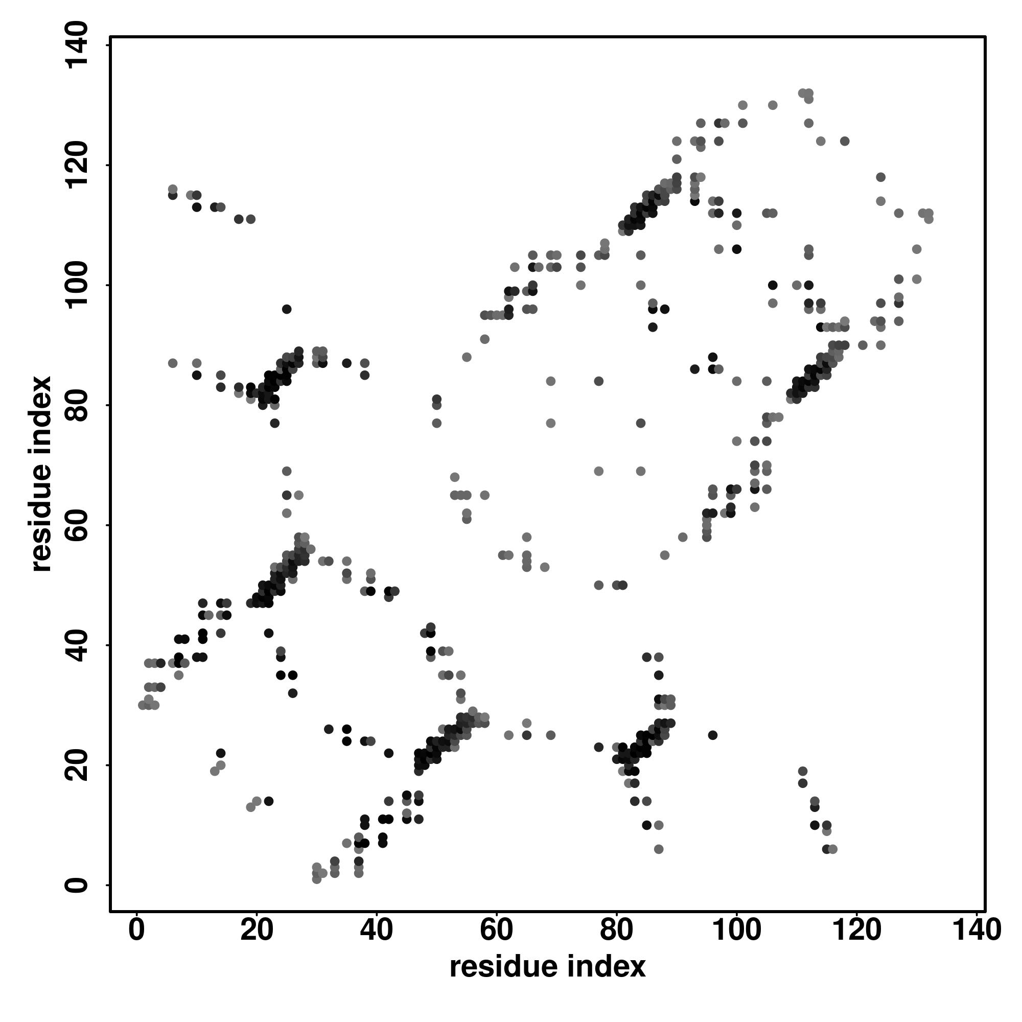For the contact map, each dot represents a residue pair with predicted contact,