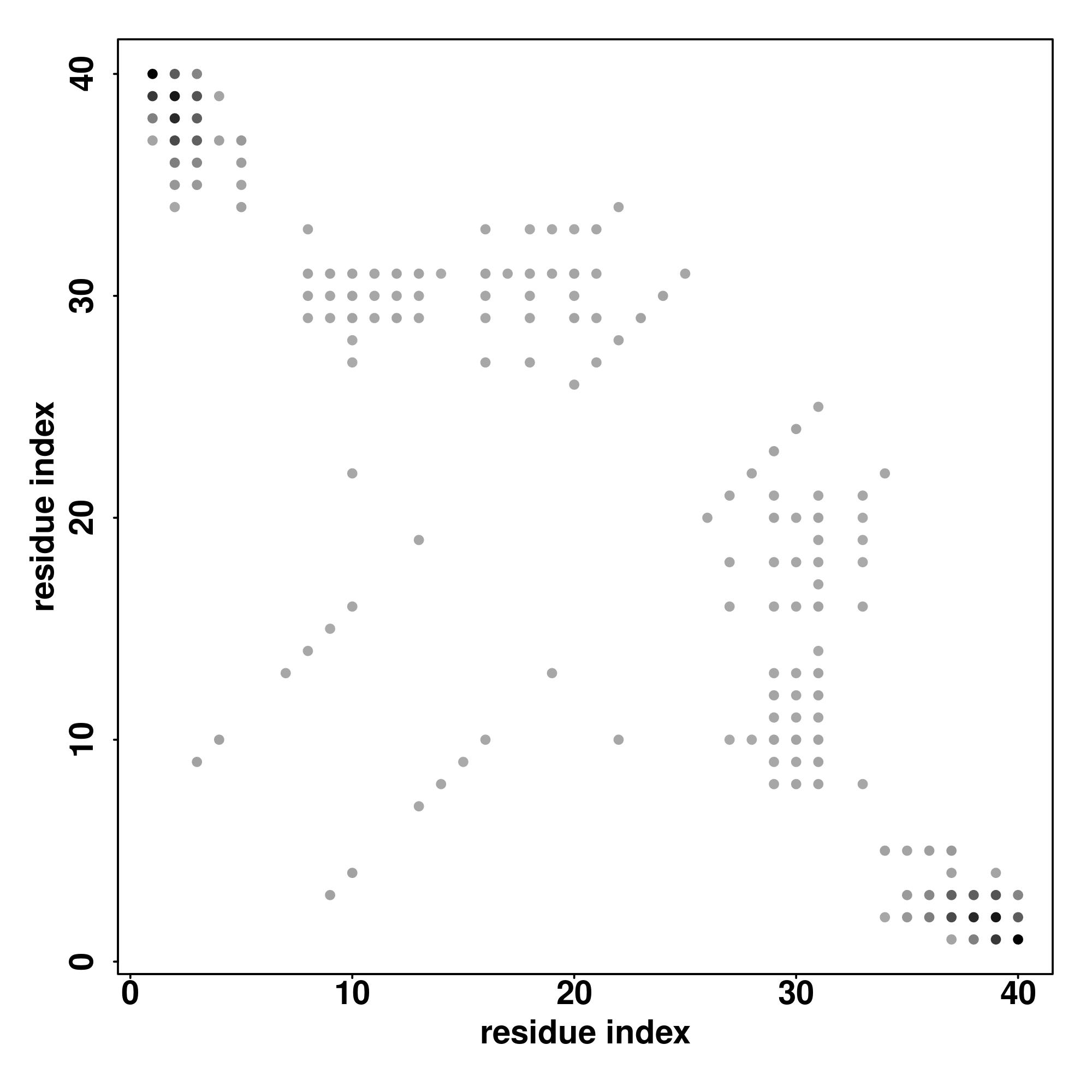 For the contact map, each dot represents a residue pair with predicted contact,