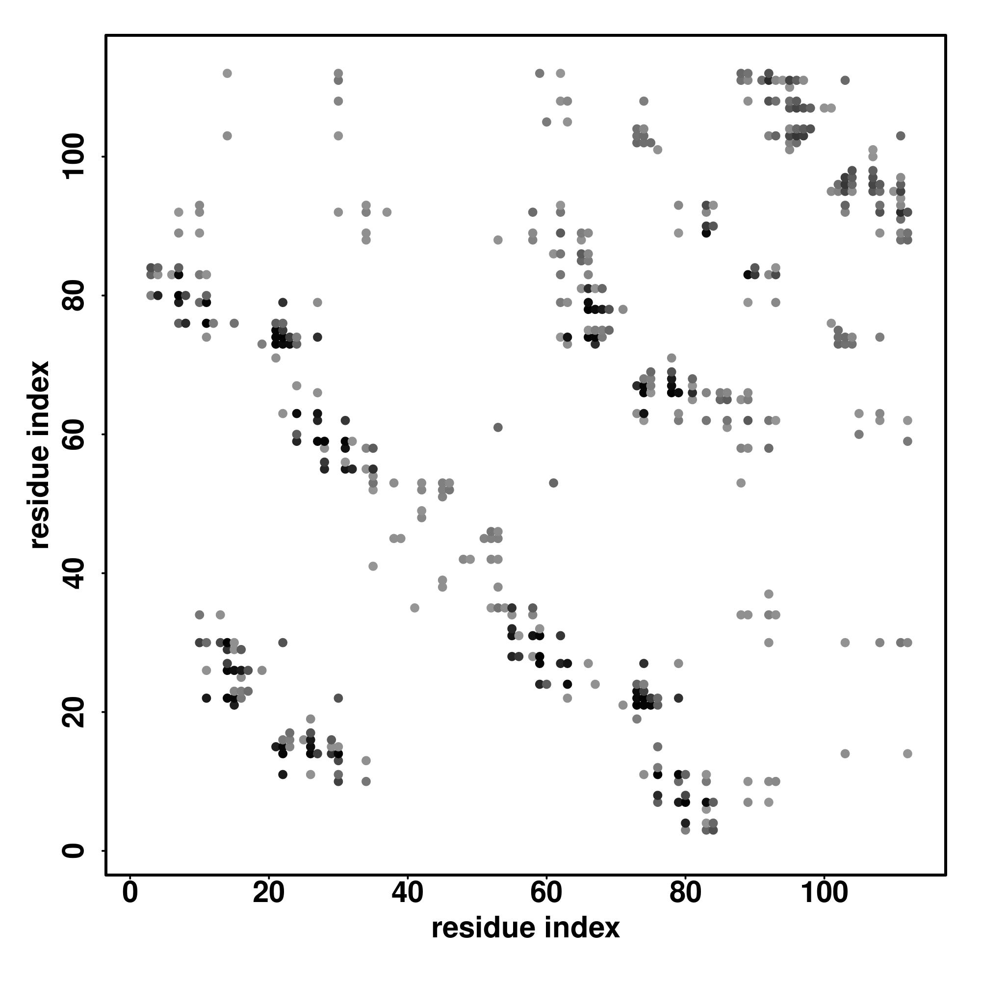 For the contact map, each dot represents a residue pair with predicted contact,