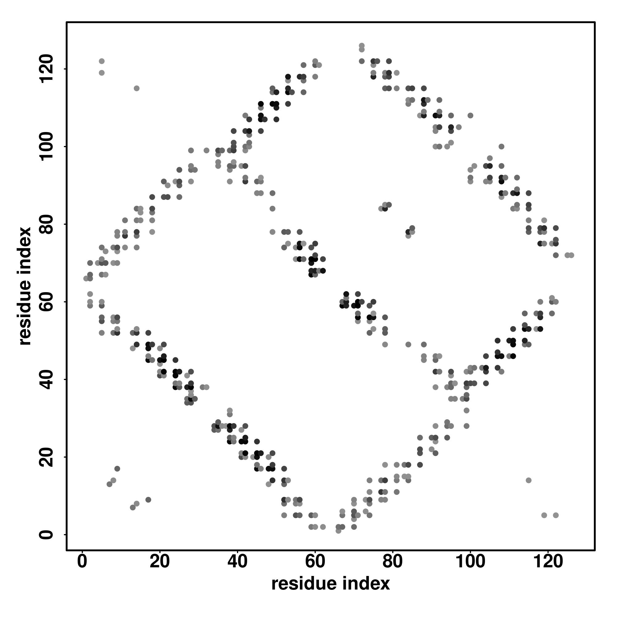 For the contact map, each dot represents a residue pair with predicted contact,