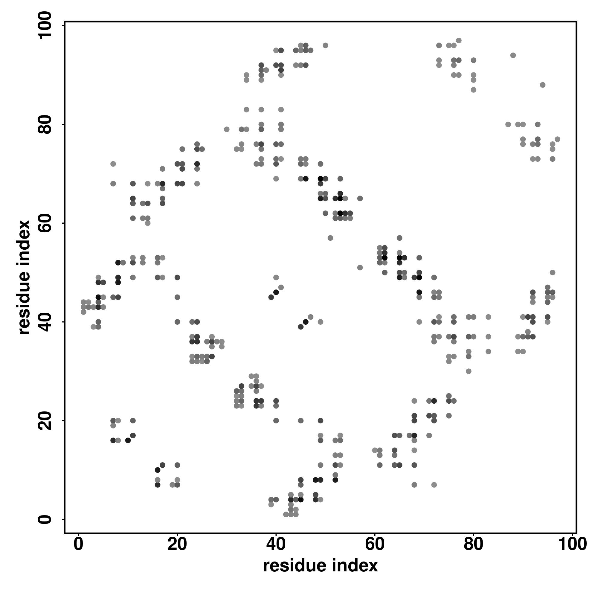 For the contact map, each dot represents a residue pair with predicted contact,