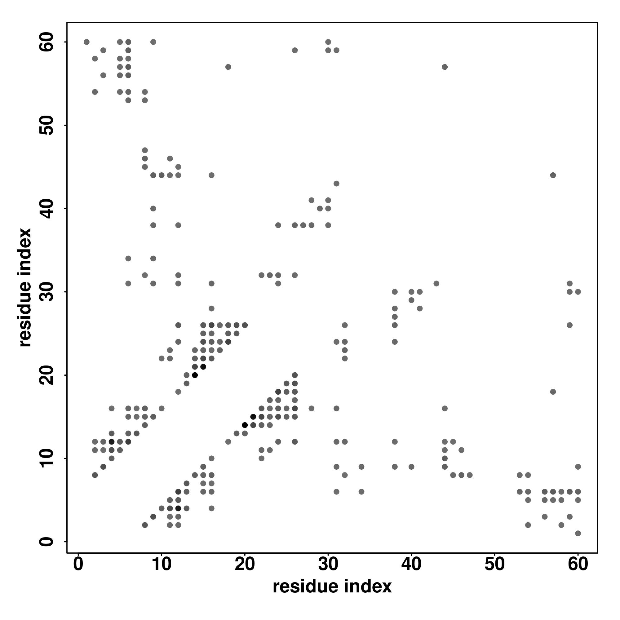 For the contact map, each dot represents a residue pair with predicted contact,