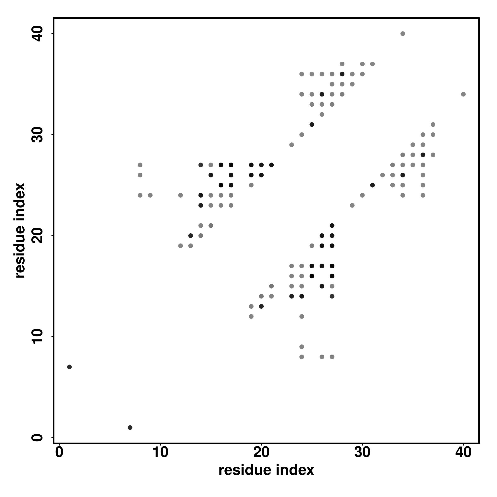 For the contact map, each dot represents a residue pair with predicted contact,