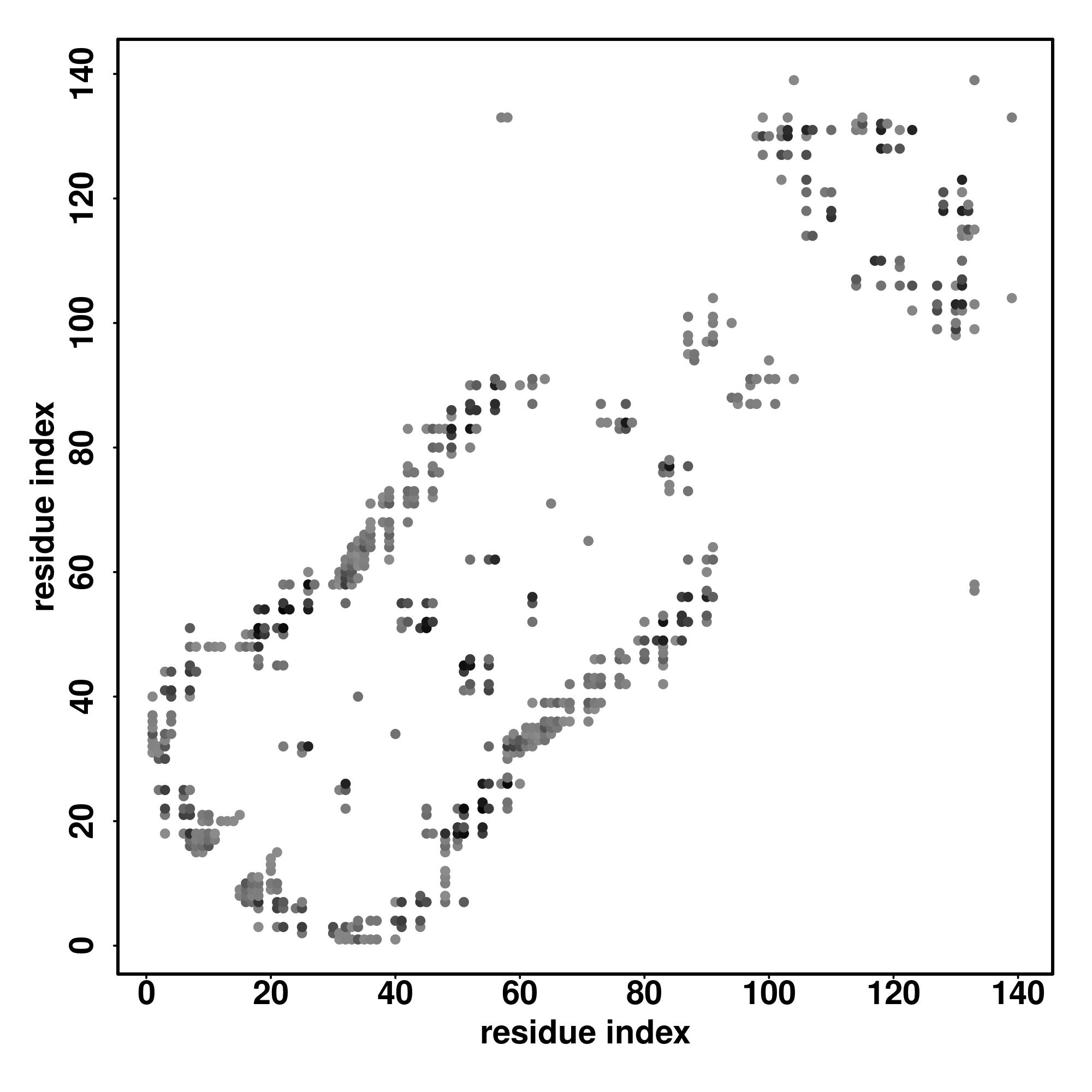 For the contact map, each dot represents a residue pair with predicted contact,