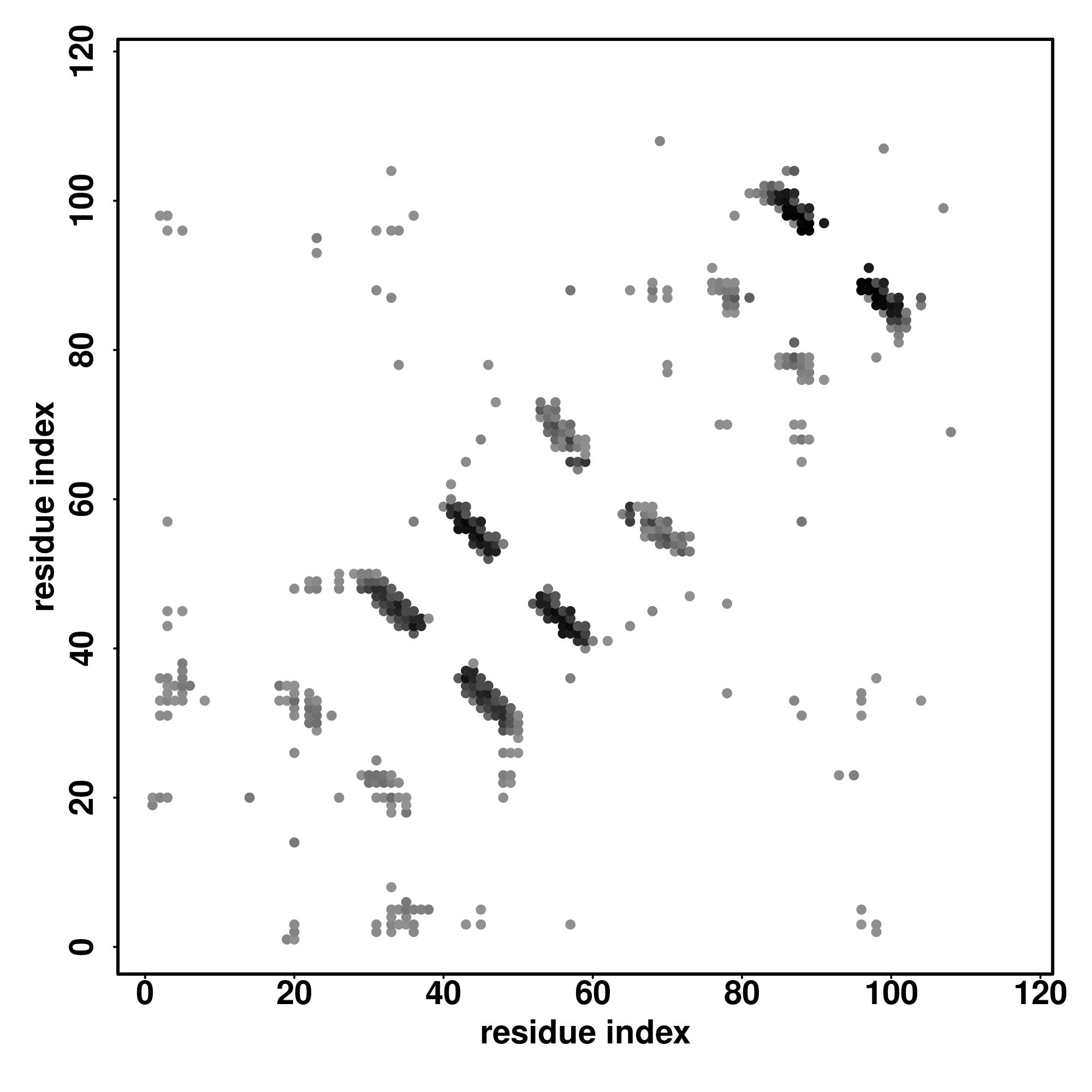 For the contact map, each dot represents a residue pair with predicted contact,