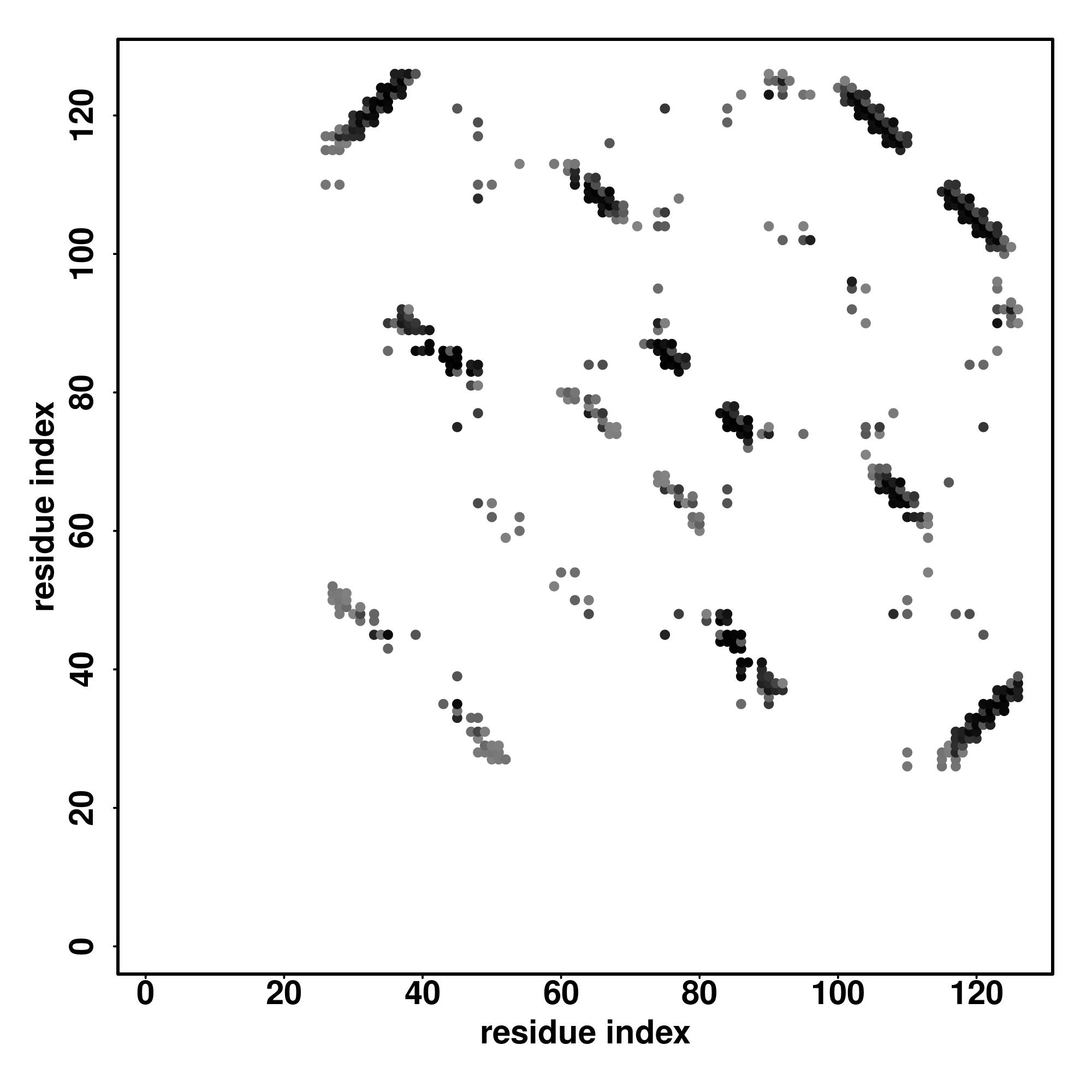| Values range from 0 (buried residue) to 8 (highly exposed residue) | |
