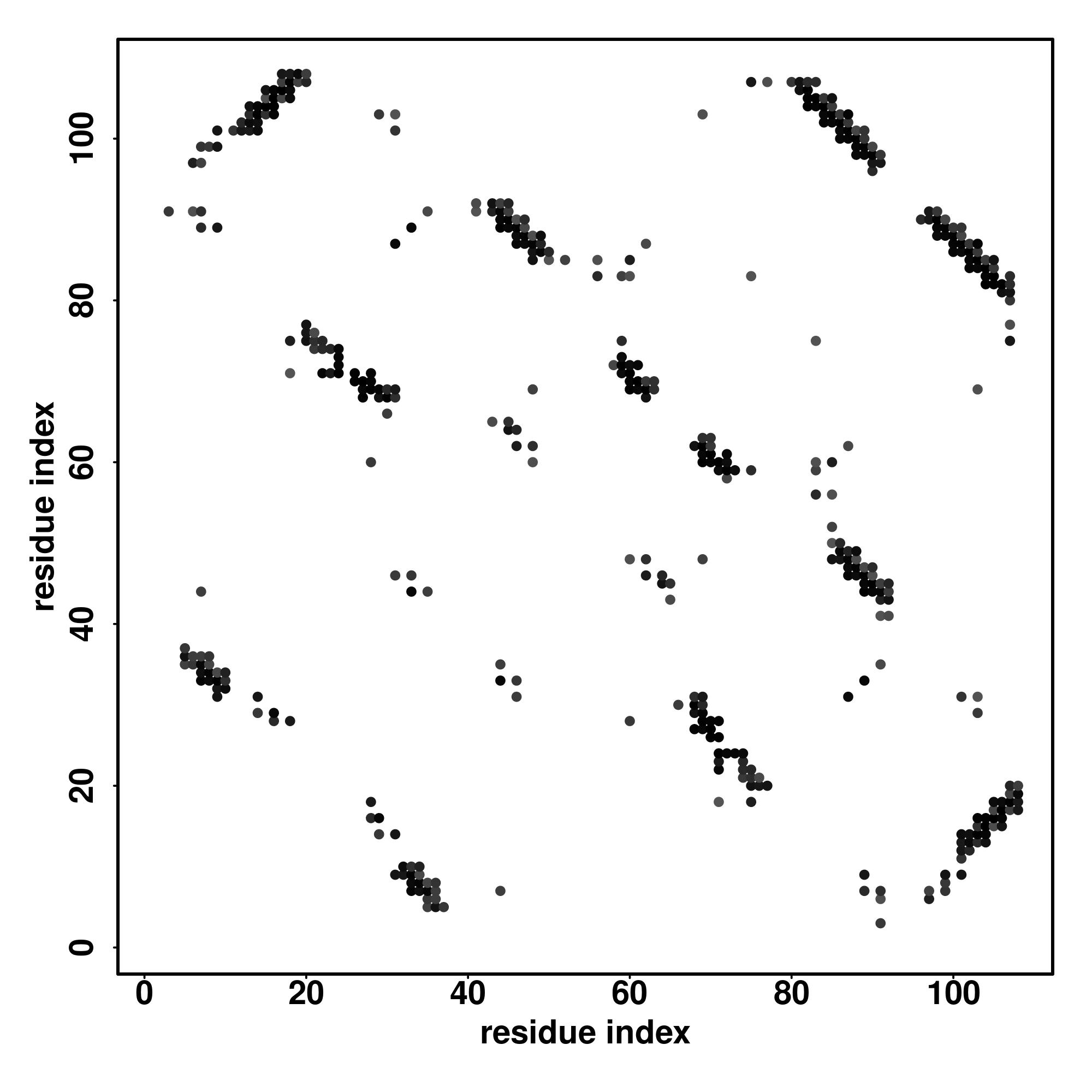For the contact map, each dot represents a residue pair with predicted contact,