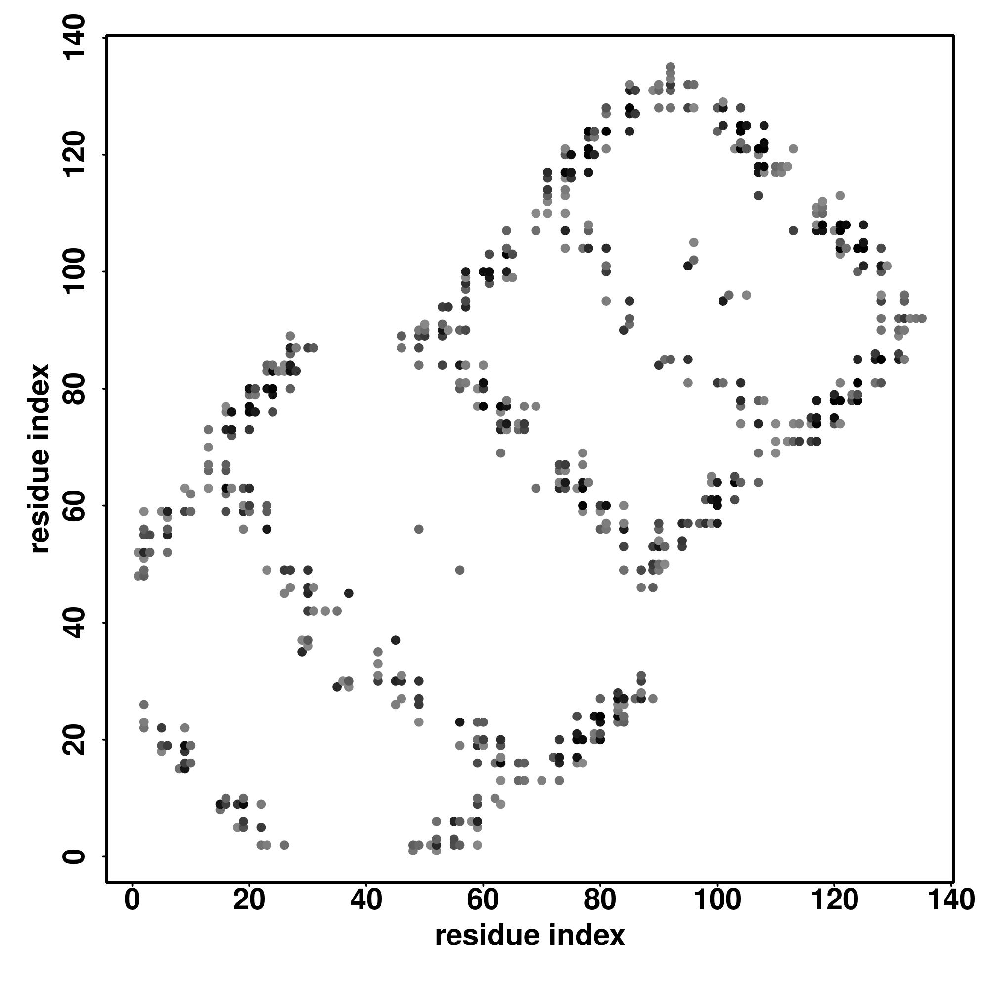 For the contact map, each dot represents a residue pair with predicted contact,
