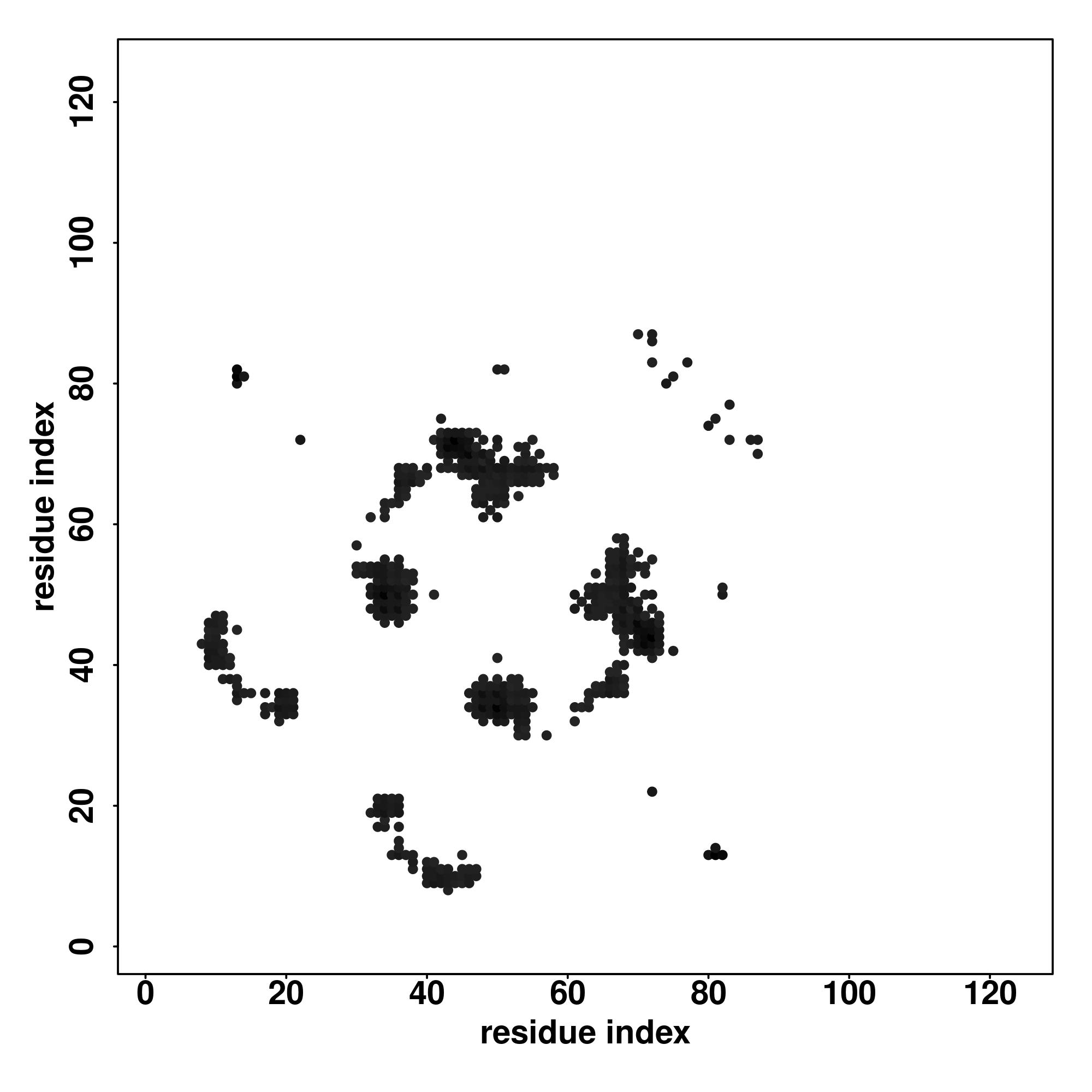For the contact map, each dot represents a residue pair with predicted contact,