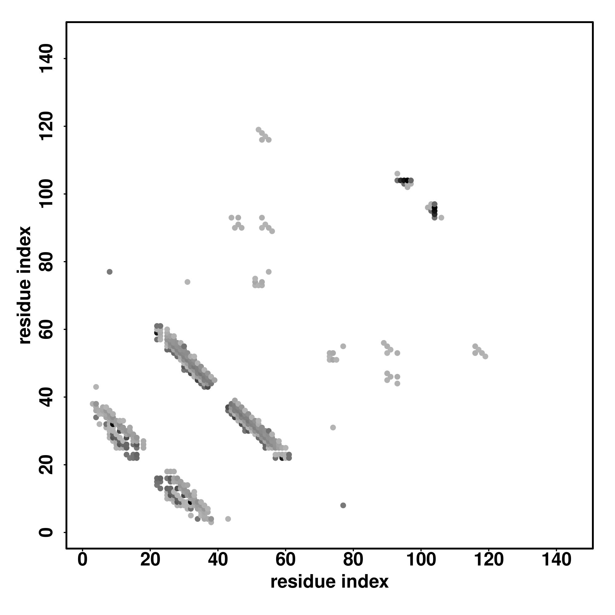 For the contact map, each dot represents a residue pair with predicted contact,