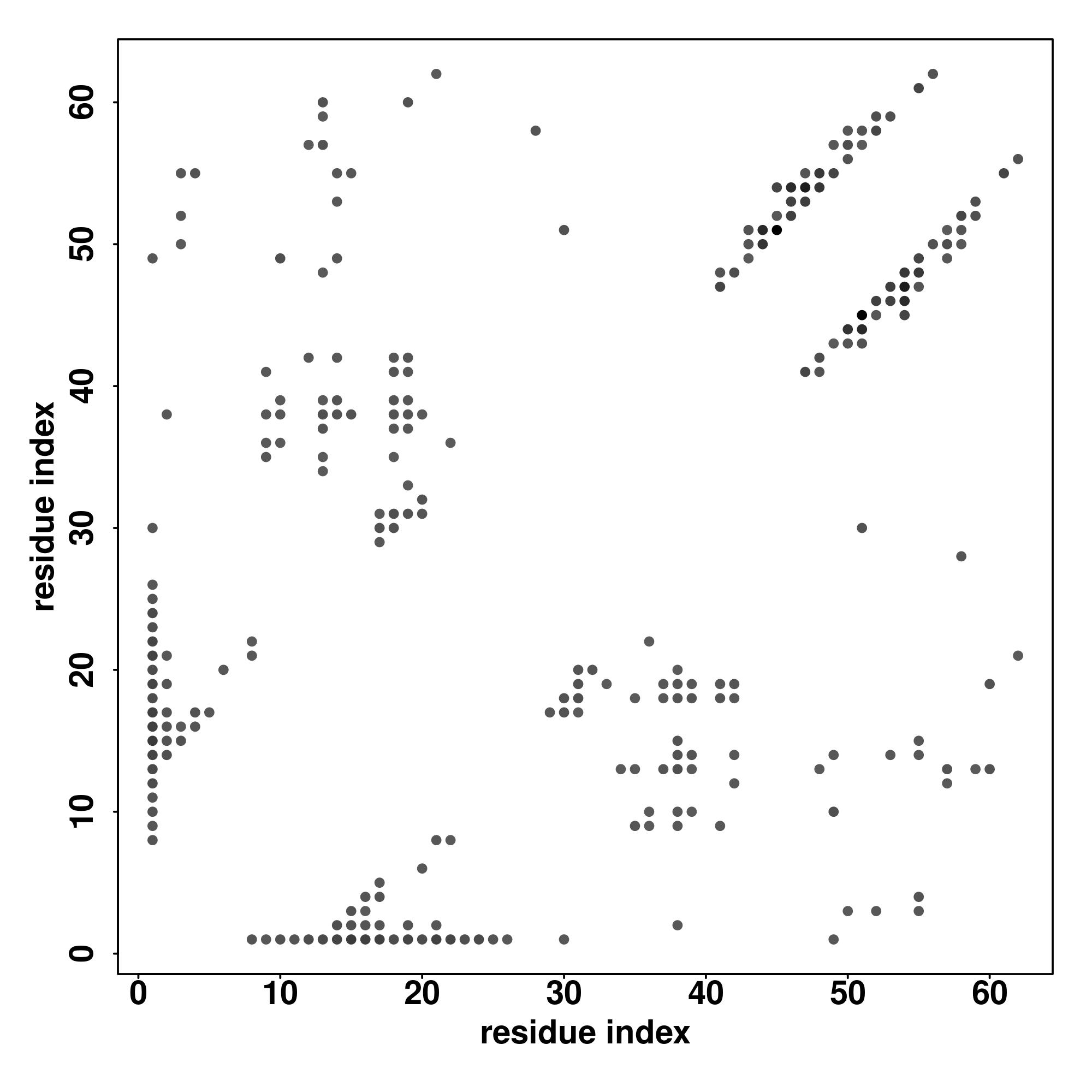 For the contact map, each dot represents a residue pair with predicted contact,
