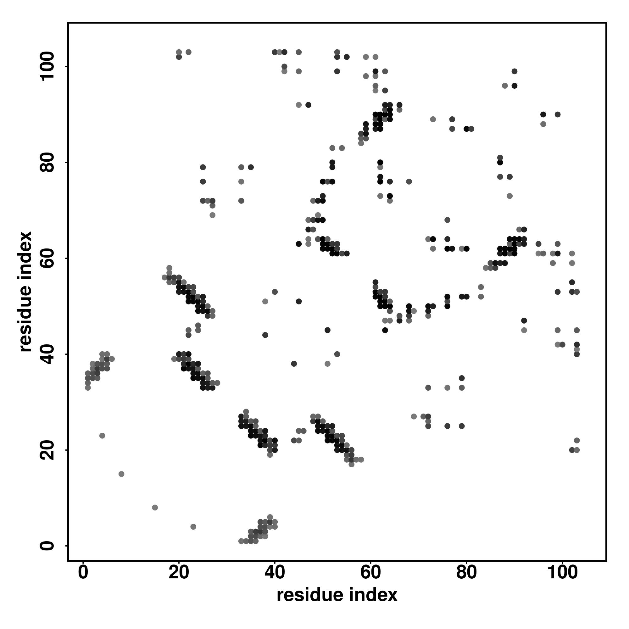 For the contact map, each dot represents a residue pair with predicted contact,