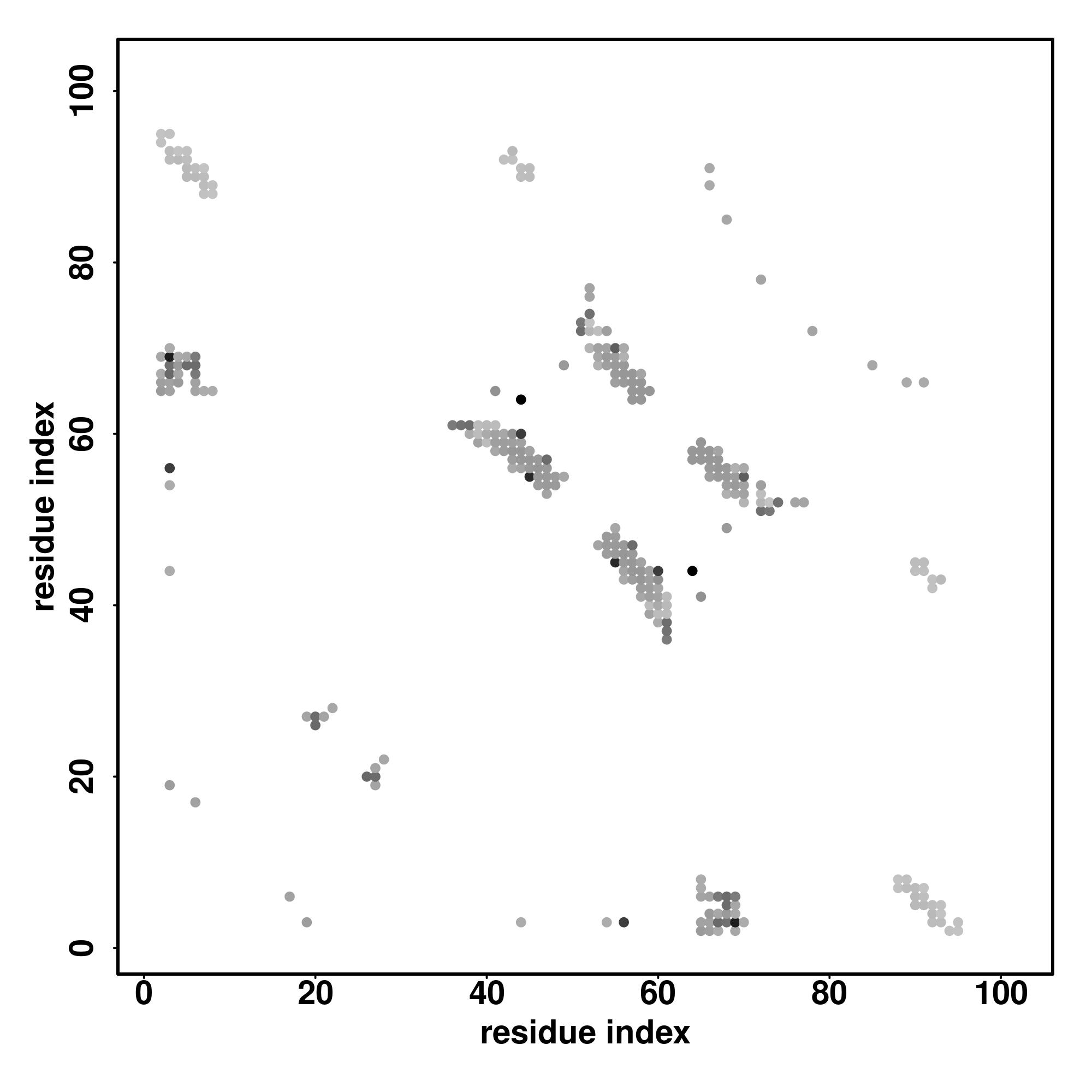 For the contact map, each dot represents a residue pair with predicted contact,